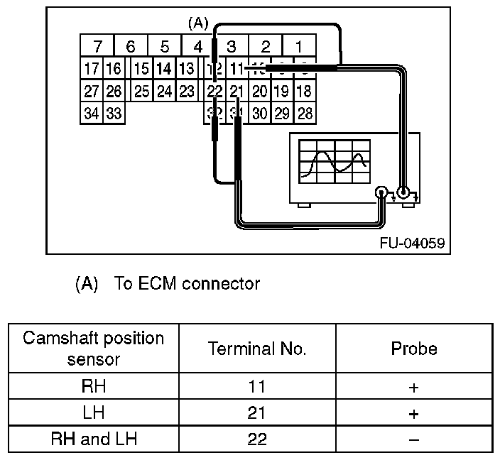 1. CAMSHAFT POSITION SENSOR (METHOD WITH OSCILLOSCOPE)