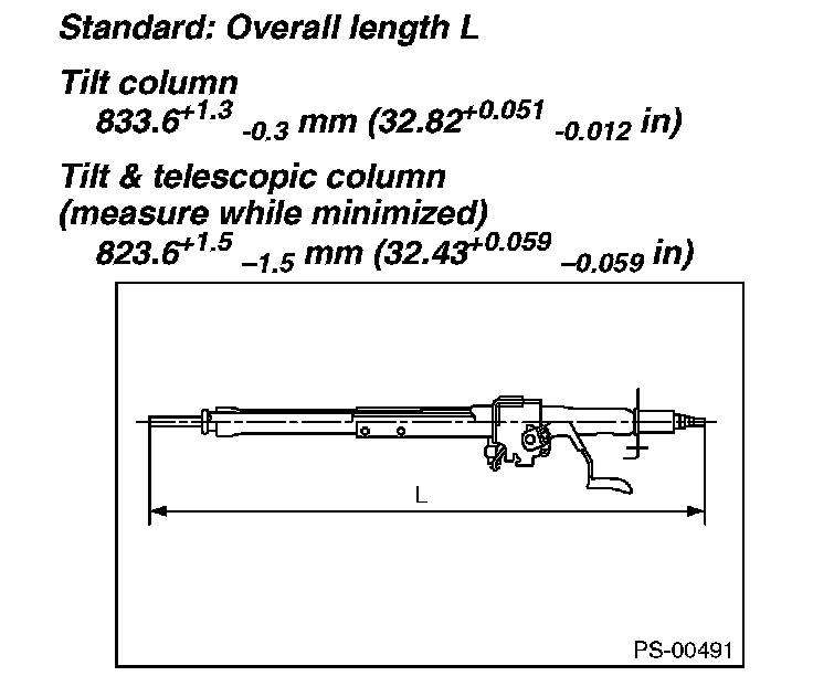 Measure the overall length of steering column. If not within specification, replace it.