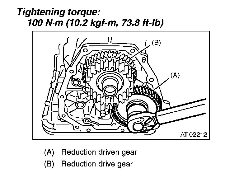 2) Using a plastic hammer, install the reduction driven gear assembly and the new washer, and tighten the drive pinion lock nut.