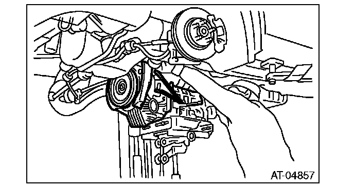 2) Place the wrench on the crank pulley bolt, and remove all the bolts while rotating the crank pulley a little bit at a time.