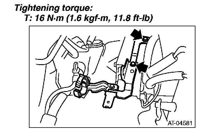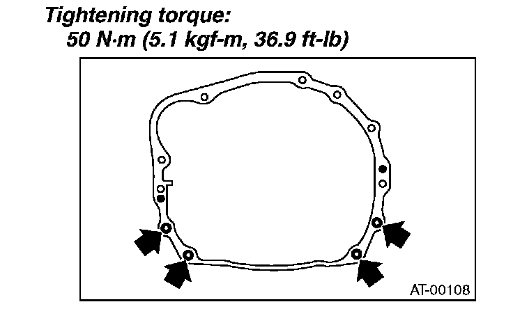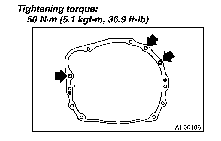 3) Tighten the bolts which hold the upper side of the transmission to the engine.
