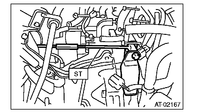 28) Install the shift select cable onto the select lever.