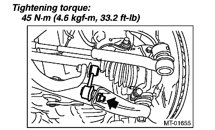 27) Attach the stabilizer link to the front arm.