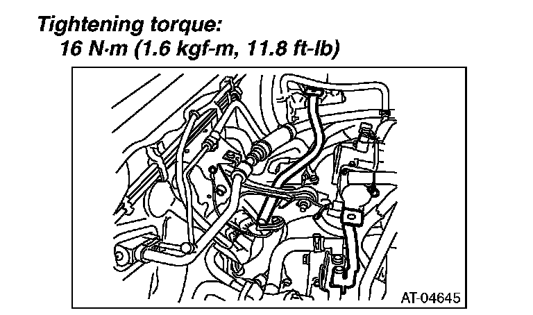 29) Install the oil charge pipe, and connect the ATF cooler hoses to the pipe.