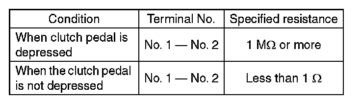2) Check the clutch switch for continuity. If the resistance is not at the standard value, replace the switch.
