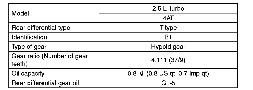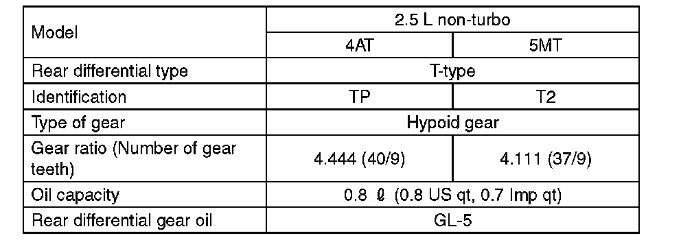 When replacing a rear differential oil, select the correct one according to the following table.
