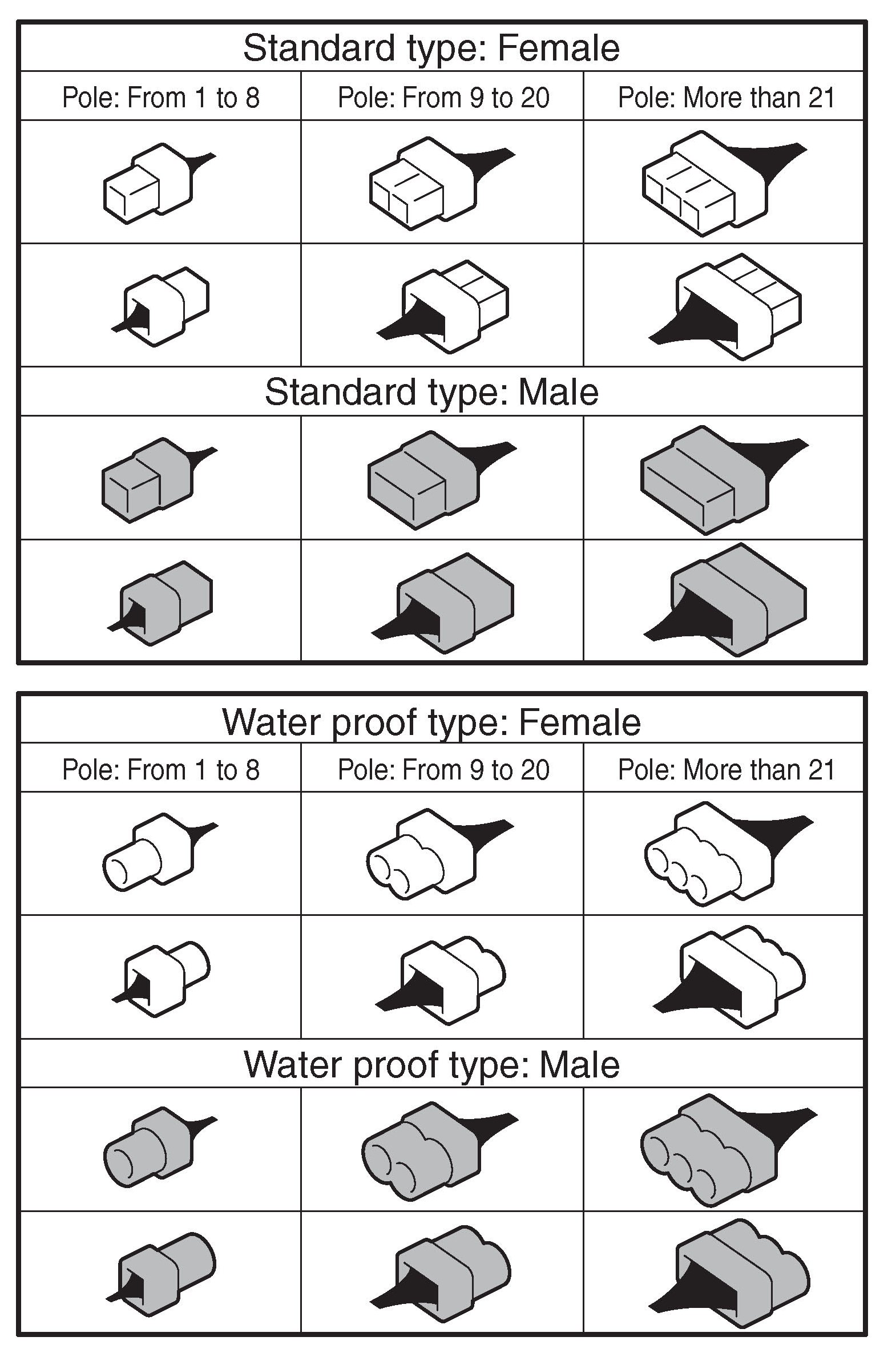 A number of connector symbols are used in each wiring diagram to easily identify the wiring harness connectors.