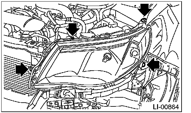 5. Remove the three bolts, disengage the clip, then detach the headlight assembly.