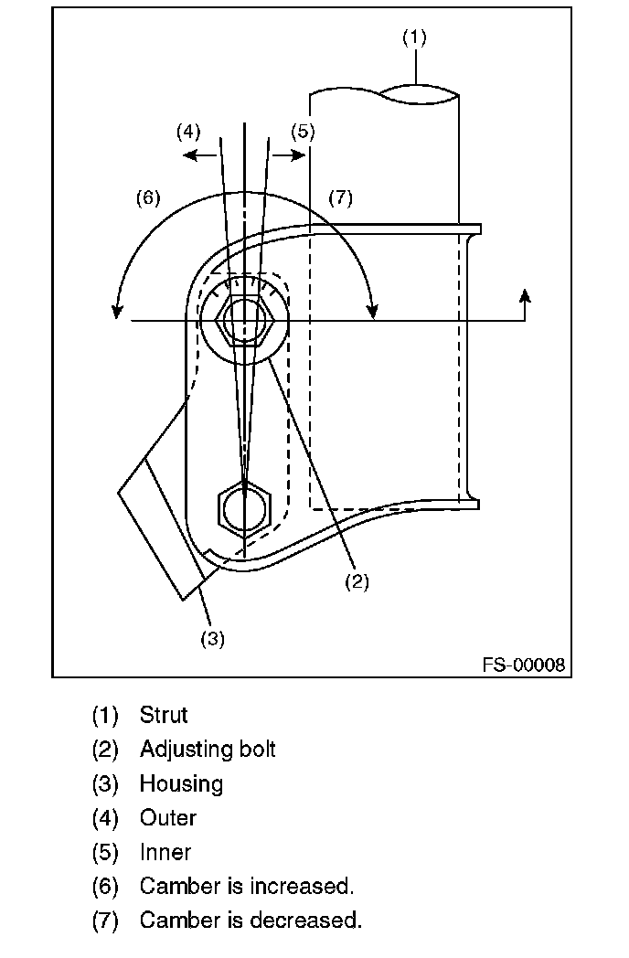3) Turn the camber adjusting bolt so that the camber is set at specification.