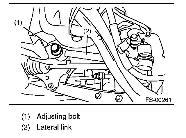 2) Turn the adjusting bolt until toe-in is within the specification.