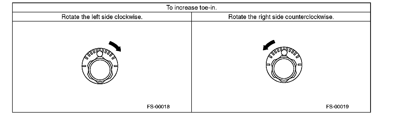 2) When one rear wheel is adjusted in a toe-in direction, adjust the other rear wheel equally in toe out direction, in order to make the thrust angle adjustment.
