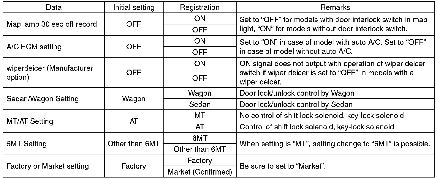 - If registrations and function setting are different from vehicle equipment, vehicle system does not operate normally and diagnosis cannot be performed correctly. Pay attention to following item.