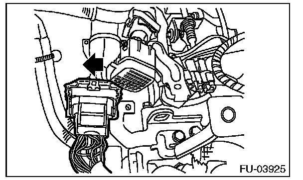 4) Slide the bulkhead harness connector in the direction of the arrow and remove it from the rear engine hanger.