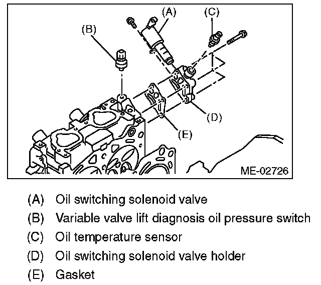 ^ Install the oil switching solenoid valve to the holder, then install it to the cylinder head.