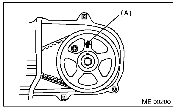 When the arrow mark (A) on cam sprocket LH is at the top position, the #1 cylinder piston is at top dead center of the compression stroke.
