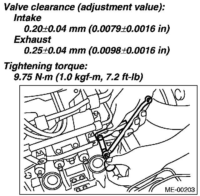4) Ensure the valve clearances of each cylinder are within specifications. If necessary, readjust the valve clearances.