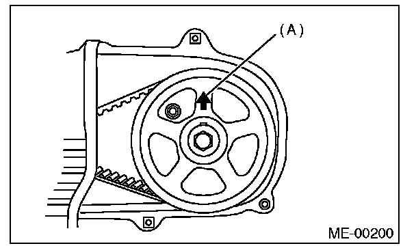 When the arrow mark (A) on cam sprocket LH is at the top position, the #1 cylinder piston is at top dead center of the compression stroke.