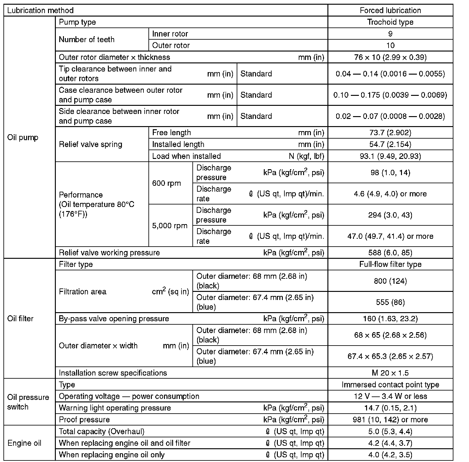 ^ If the vehicle is used in regions of high temperatures or in other severe environments, use oil with the viscosities shown below.