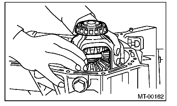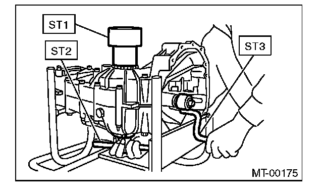 9) Place the transmission with the left side of case facing downward, and put ST1 on bearing cup.