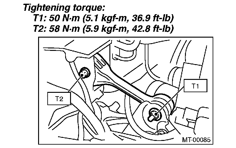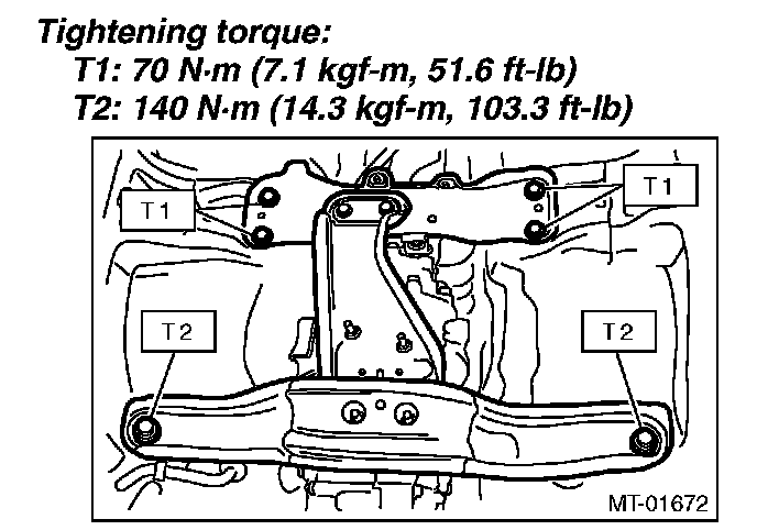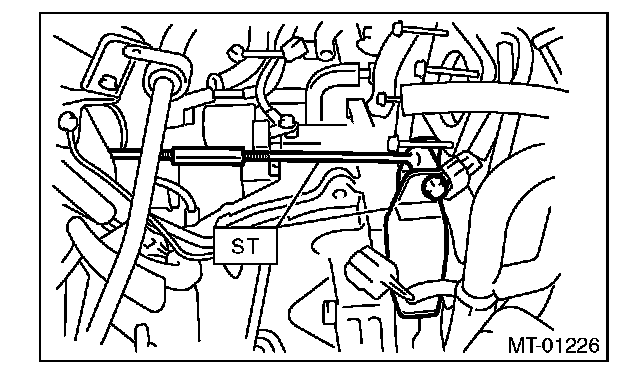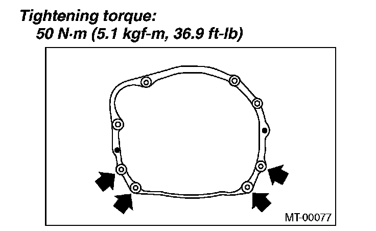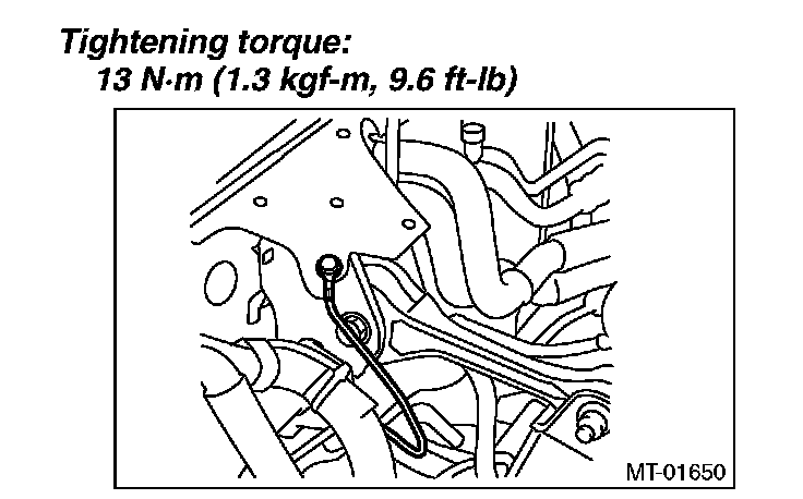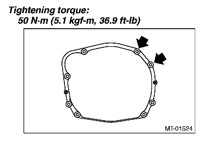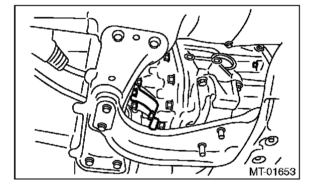 2) Tighten the bolts which hold the upper side of the transmission to the engine.