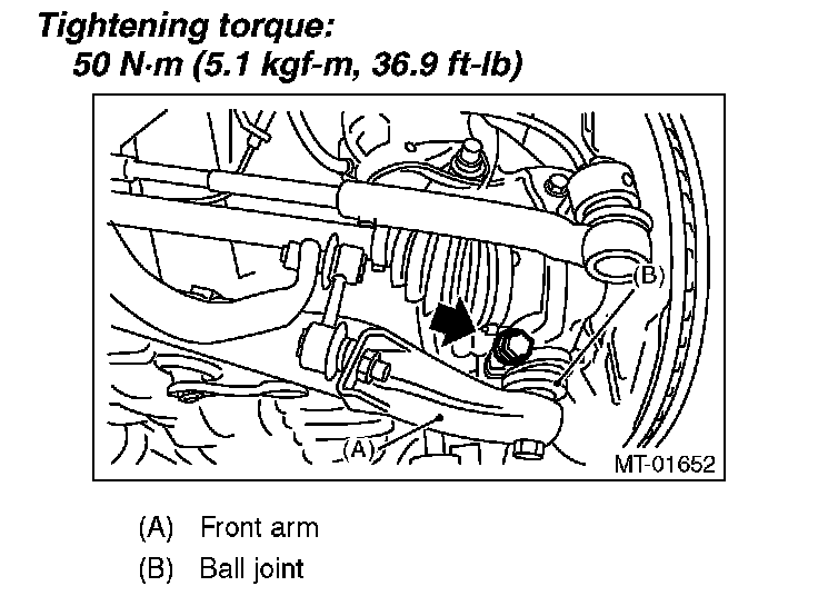 15) Insert the ball joints of the front arm into the housing, then tighten the installing bolts.