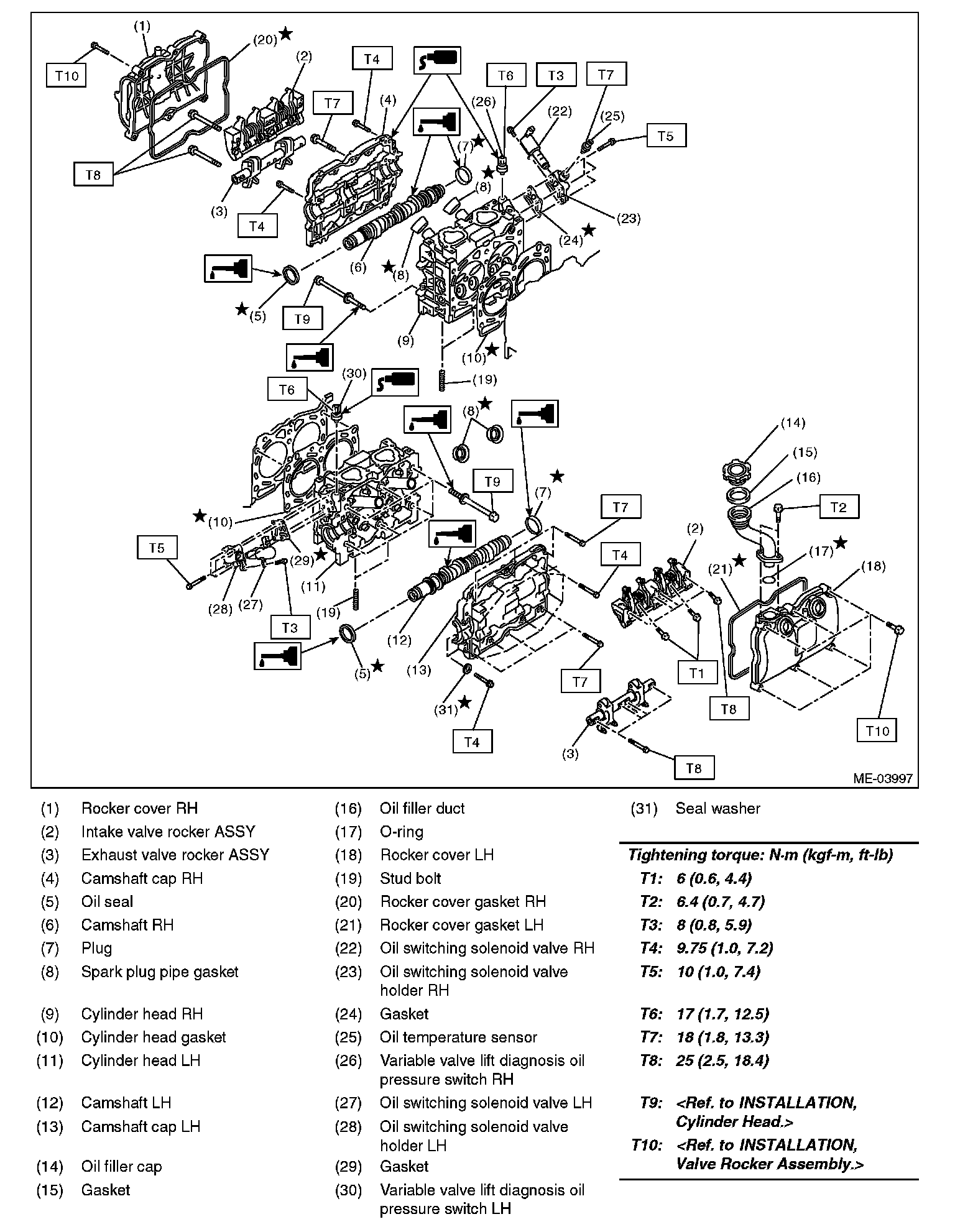 (7) Retighten all bolts to 30 Nm (3.1 kgf-m, 22.1 ft-lb) in alphabetical order.