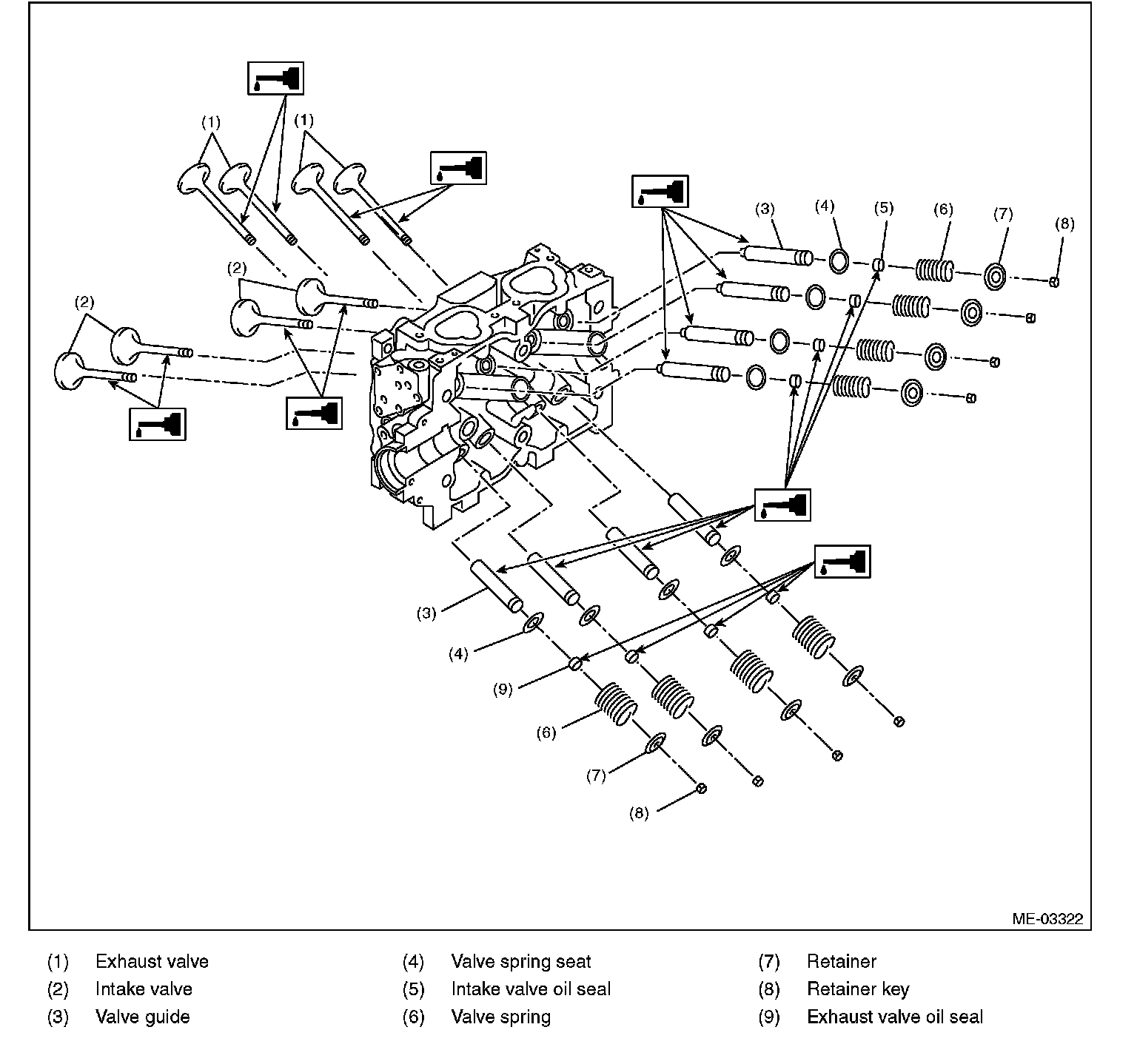 9) Recheck the contact condition between valve and valve seat after replacing the valve guide.