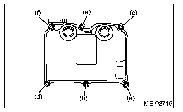 (6) Tighten all bolts to 10 Nm (1.0 kgf-m, 7.4 ft-lb) in alphabetical order.