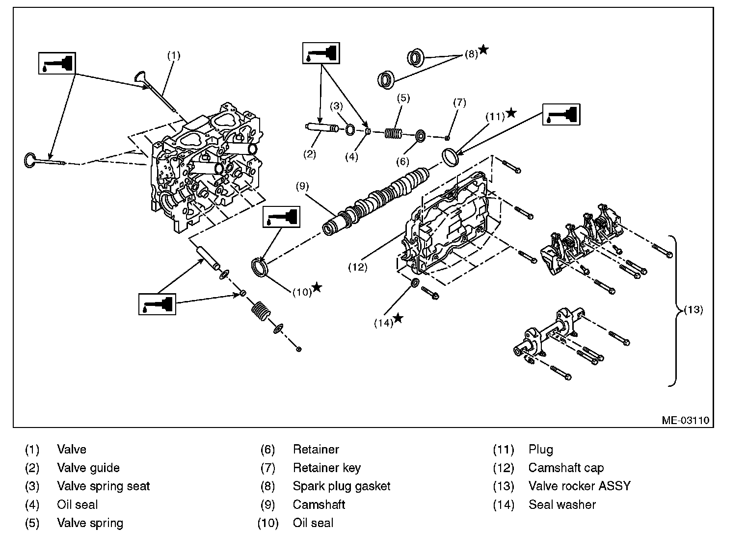 ^ Perform the work with the engine installed to body when replacing a single part. Refer to "Valve Clearance" for preparation procedures.