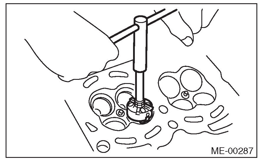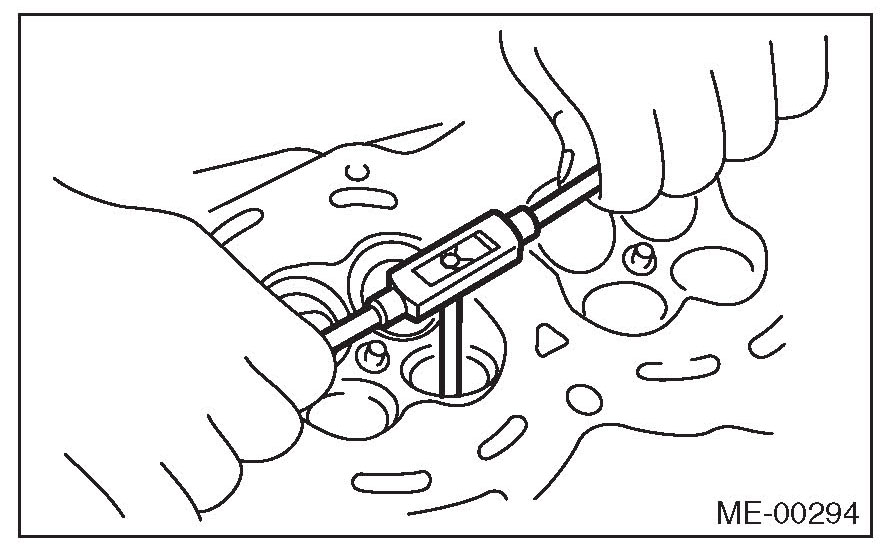 7) Ream the inside of valve guide using ST. Put the ST in valve guide, and rotate the ST slowly clockwise while pushing it lightly. Bring the ST back while rotating it clockwise.