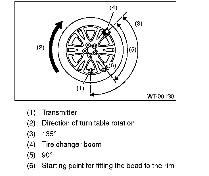 ^ To prevent damaging the transmitter, set the tire changer boom in the position as shown in the figure.
