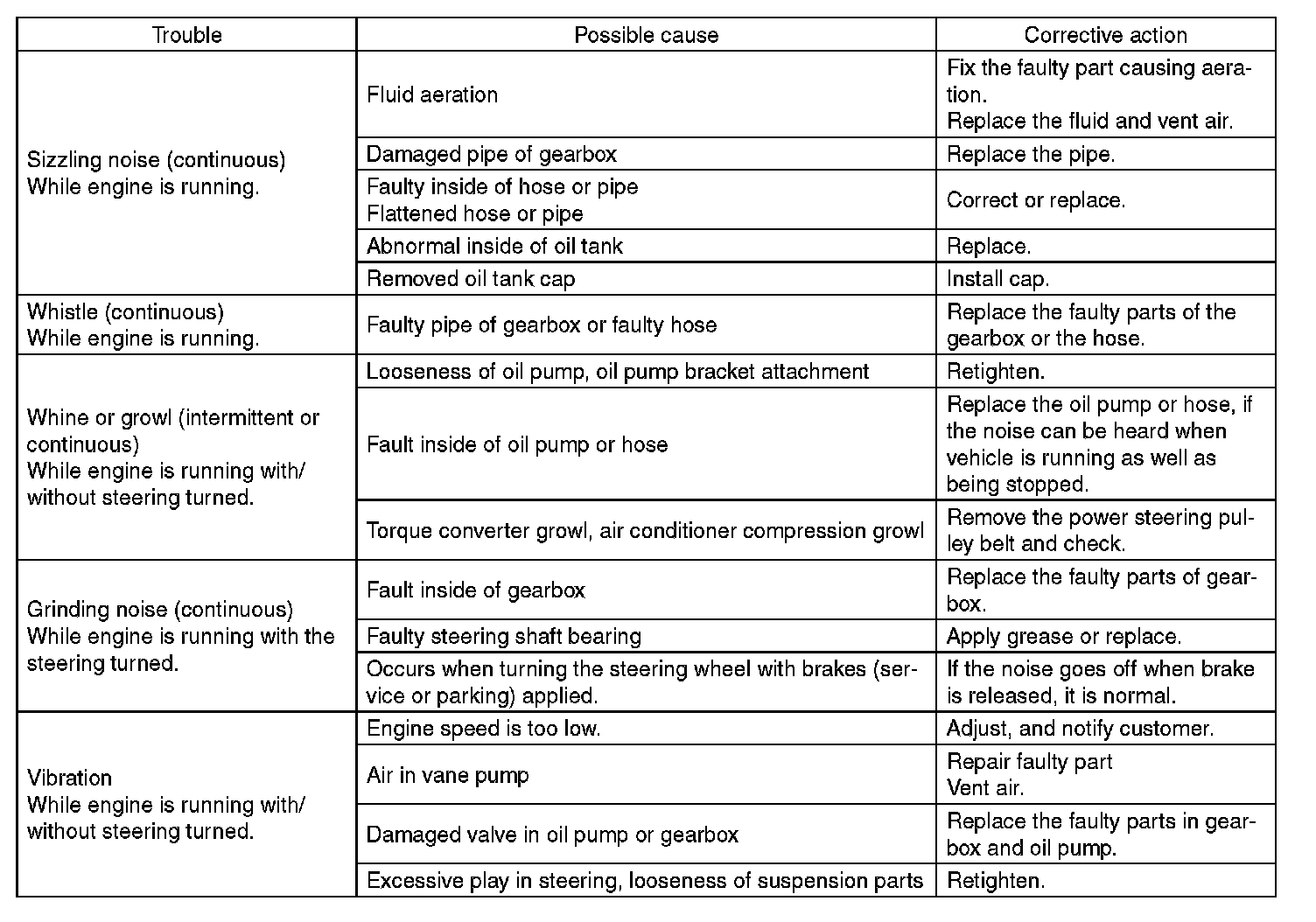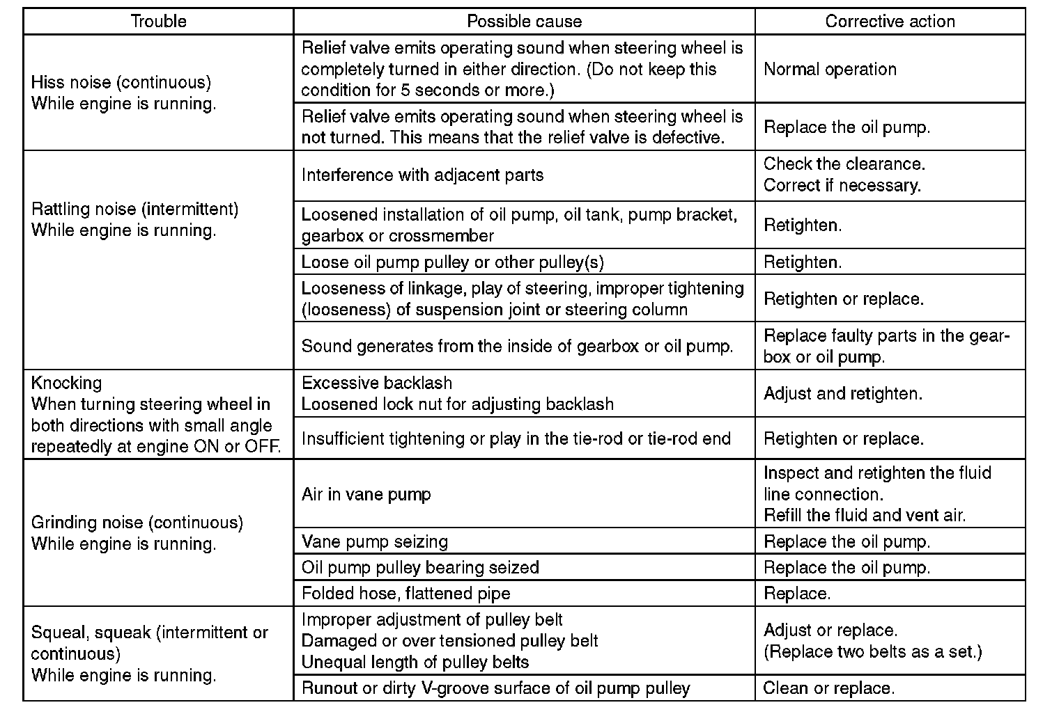 ^ The oil pump normally makes a small whining noise due to its mechanism. Even if a noise is heard when steering wheel is turned at stand still, there is no abnormal function in the system provided that the noise eliminates when the vehicle is driving.