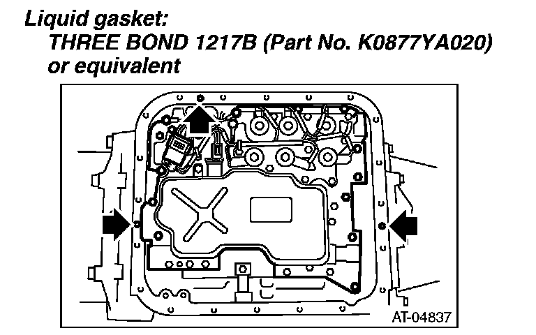 4) Apply proper amount of liquid gasket to the entire oil pan mating surface.