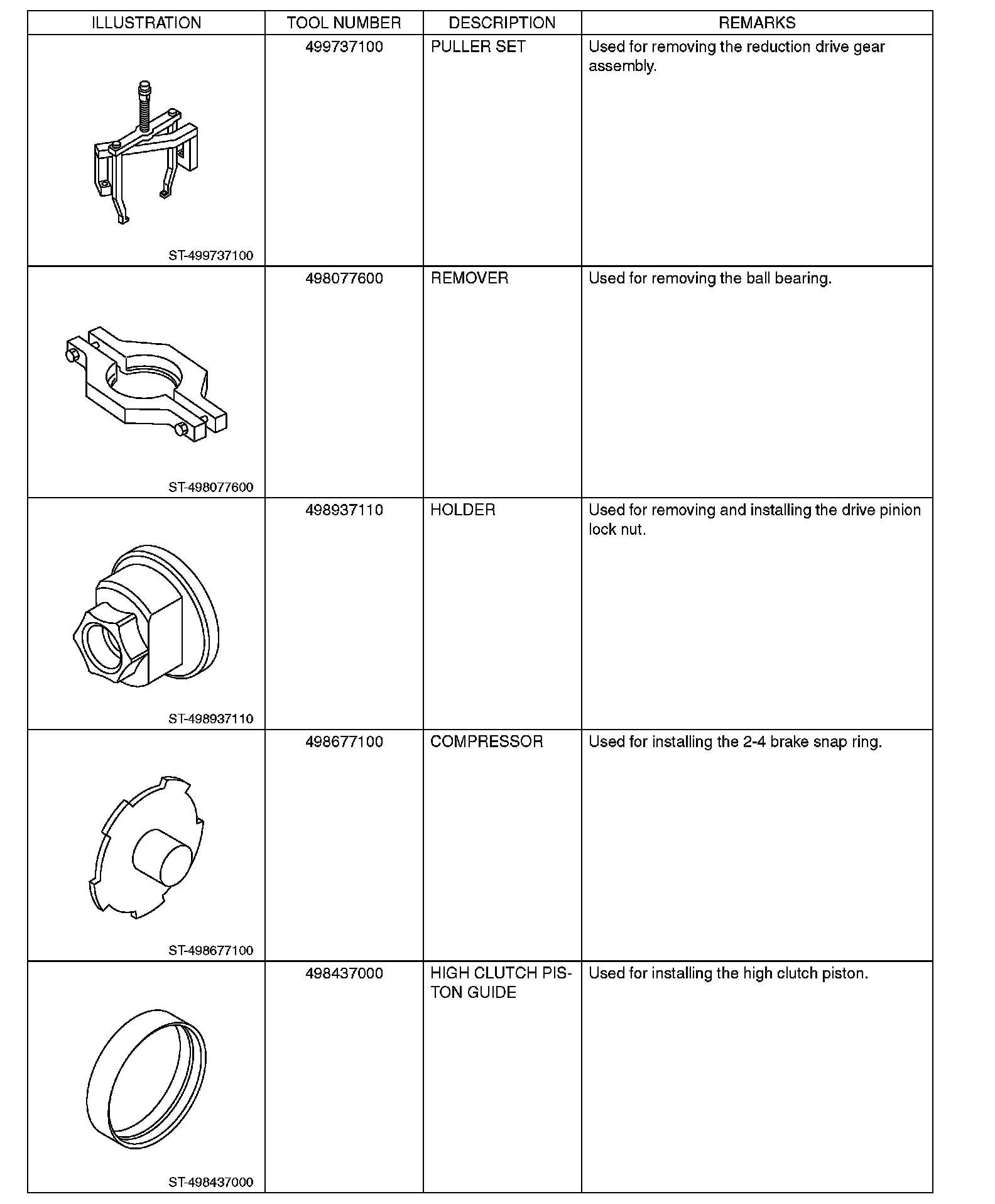 Automatic Transmission/Transaxle: Tools and Equipment