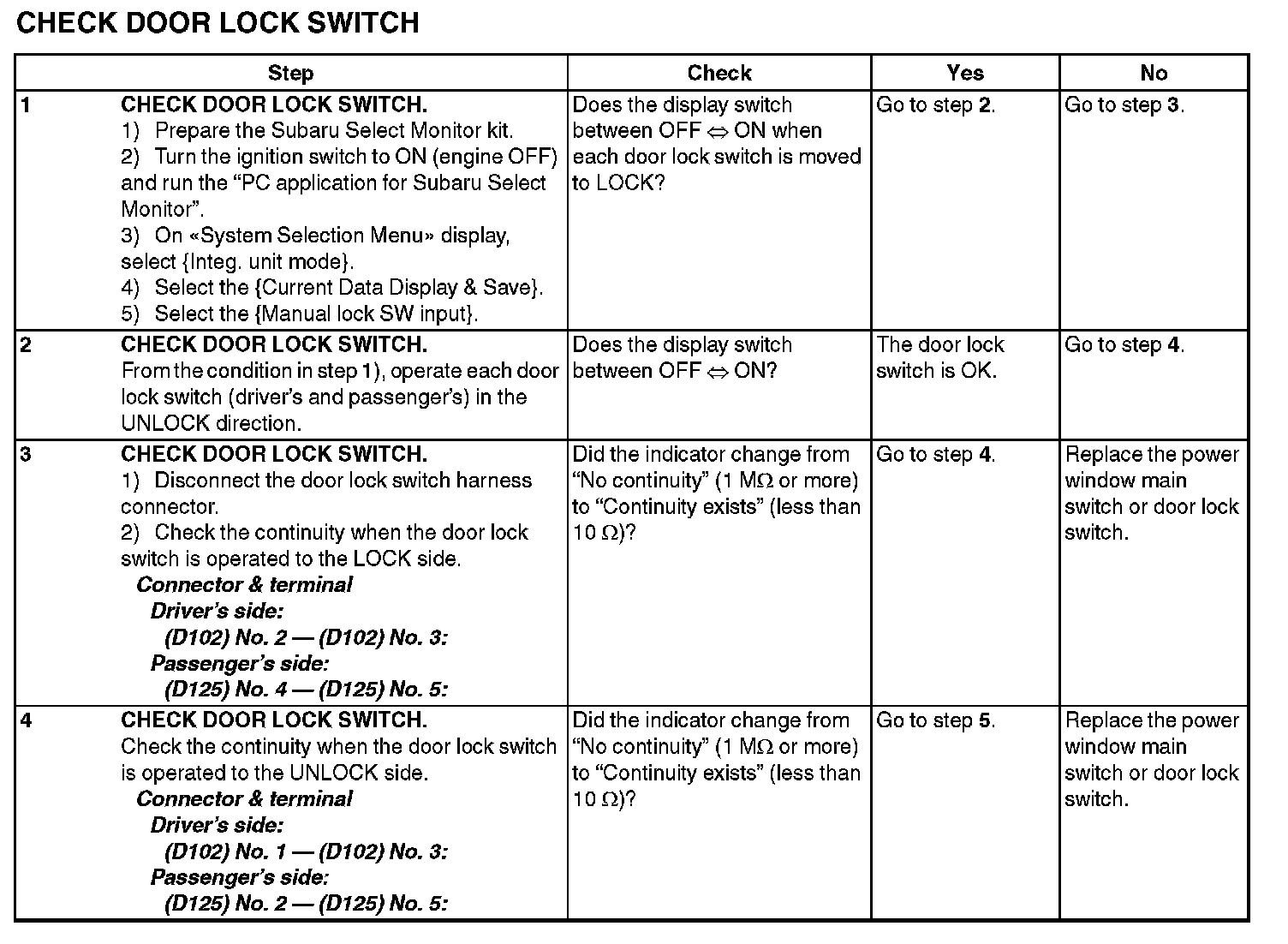 CHECK DOOR LOCK SWITCH