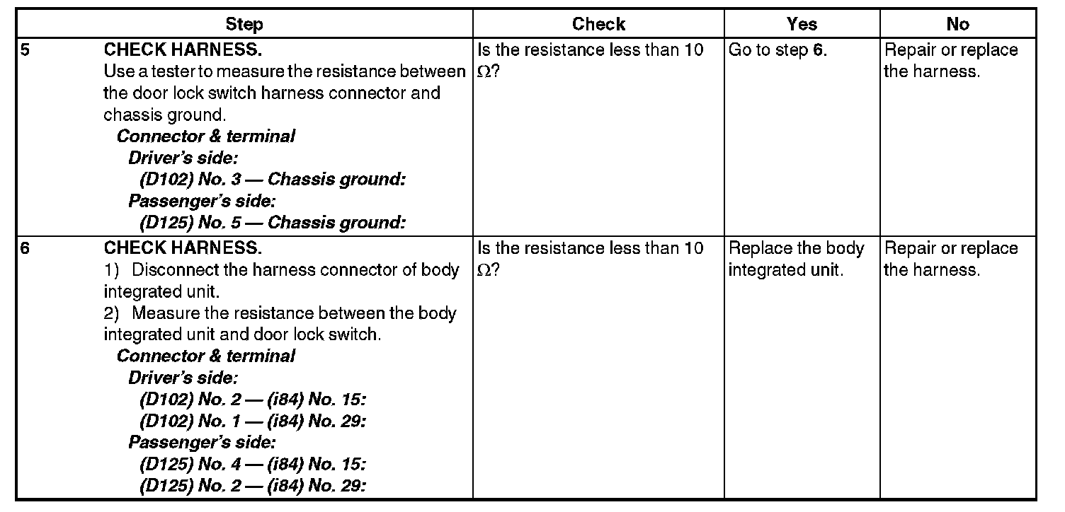 Check Door Lock Switch