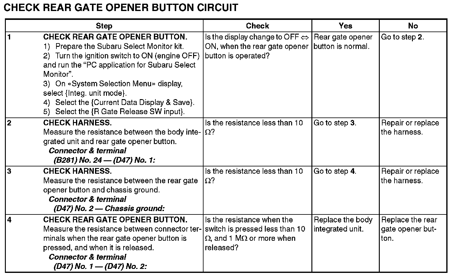 CHECK REAR GATE OPENER BUTTON CIRCUIT