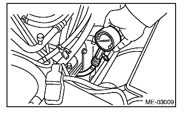 11) Crank the engine by the starter motor, and read the maximum value on the gauge when the needle of compression gauge is steady.