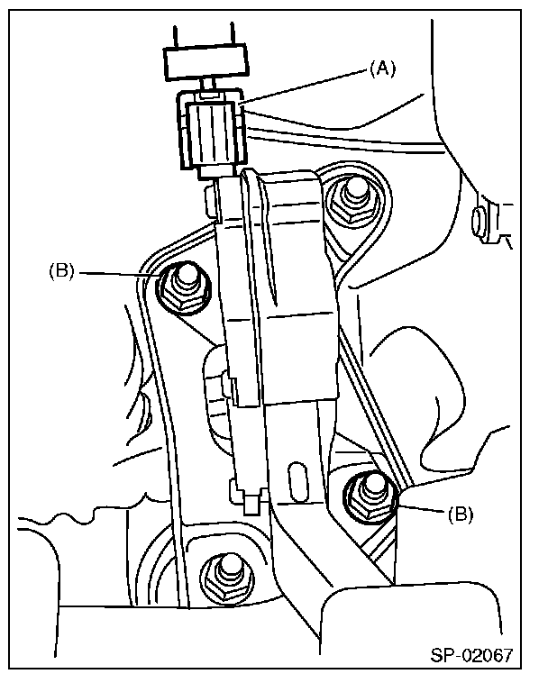 3. Remove the nut (B) securing accelerator pedal assembly, and remove the accelerator pedal assembly.