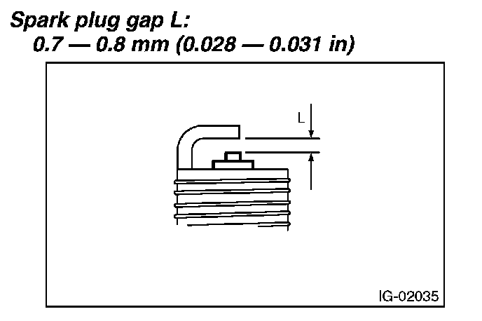 Clean spark plugs with a nylon brush, etc. Clean and remove the carbon or oxide deposits. If deposits are too stubborn, replace the spark plugs. After cleaning the spark plugs, measure the spark plug gap using a gap gauge.