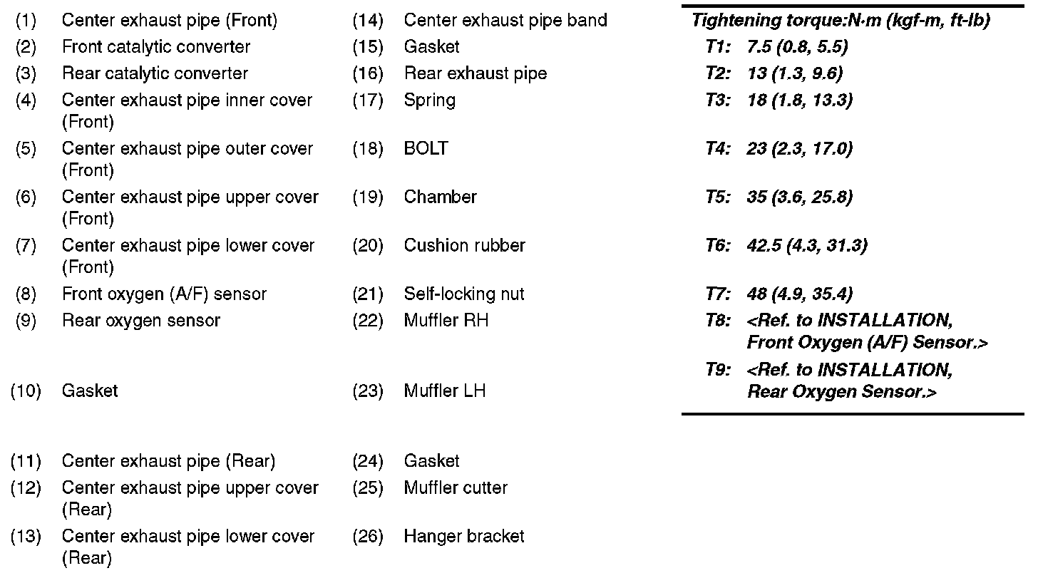 Center and Rear Exhaust Pipe, and Muffler (Part 2):