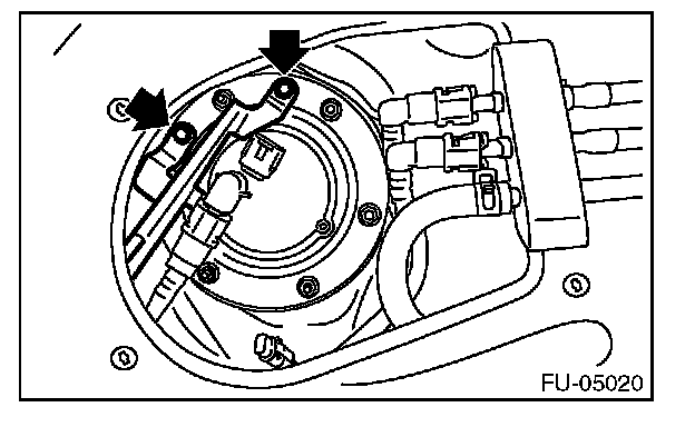 9. Remove the nuts securing the fuel sub level sensor upper plate to the fuel tank and remove the fuel sub level sensor upper plate.