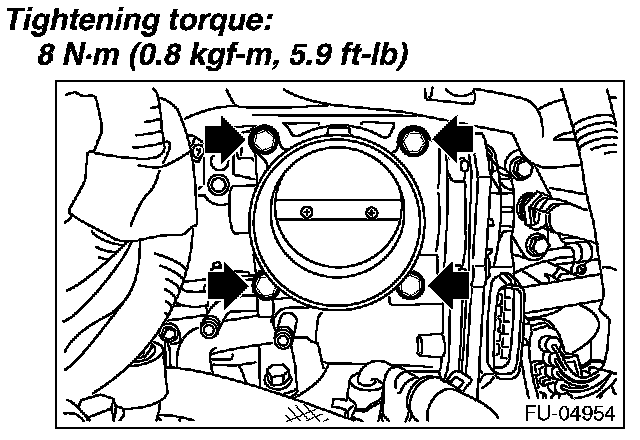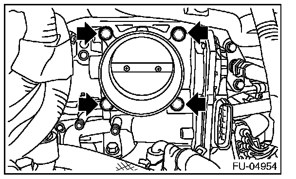 9. Remove the bolts which secure the throttle body to the intake manifold, and remove the throttle body.