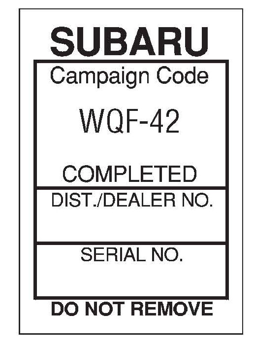 Stop Sale WQF-42; Optional Genuine Subaru Remote Engine