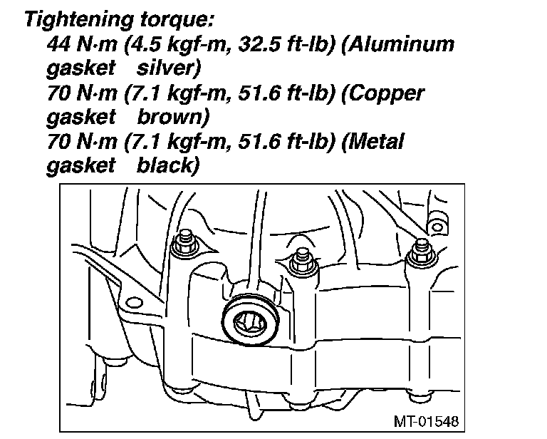 ^ Tighten the drain plug of the transmission gear oil after draining the transmission gear oil.