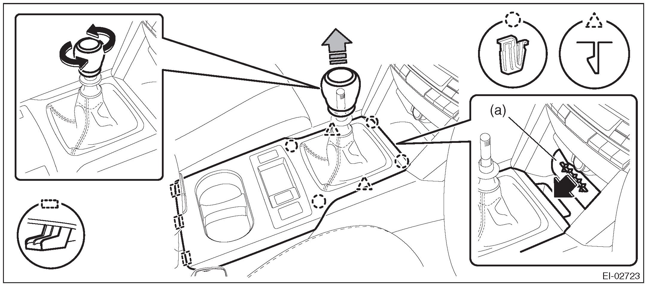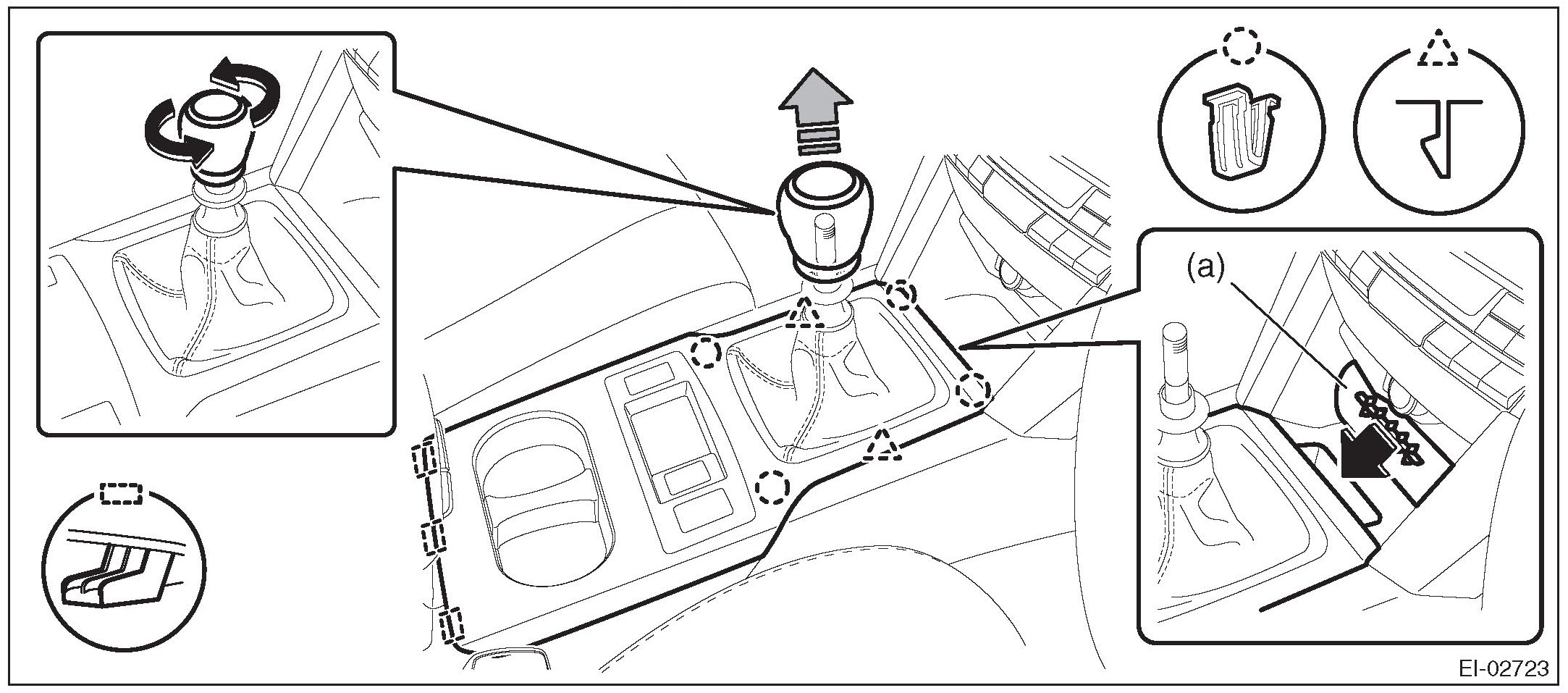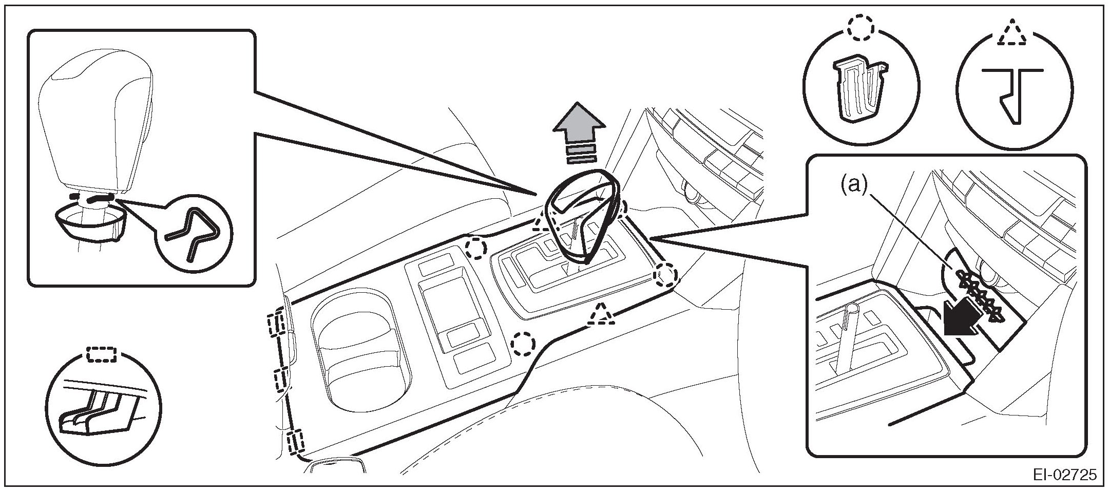 NOTE: Turn over the front center pocket mat (a) and pull up the console front cover from the