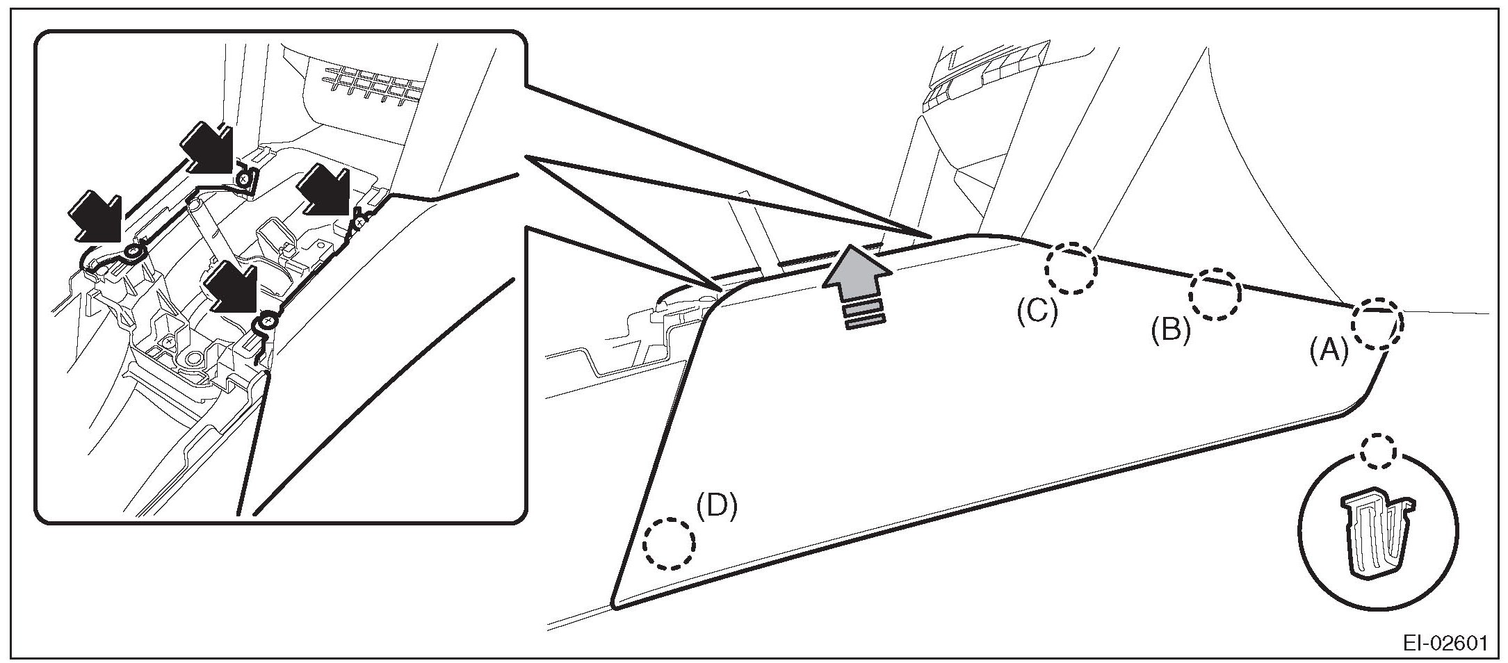 1. Remove the screws and release the clips (A) to (D) in order.