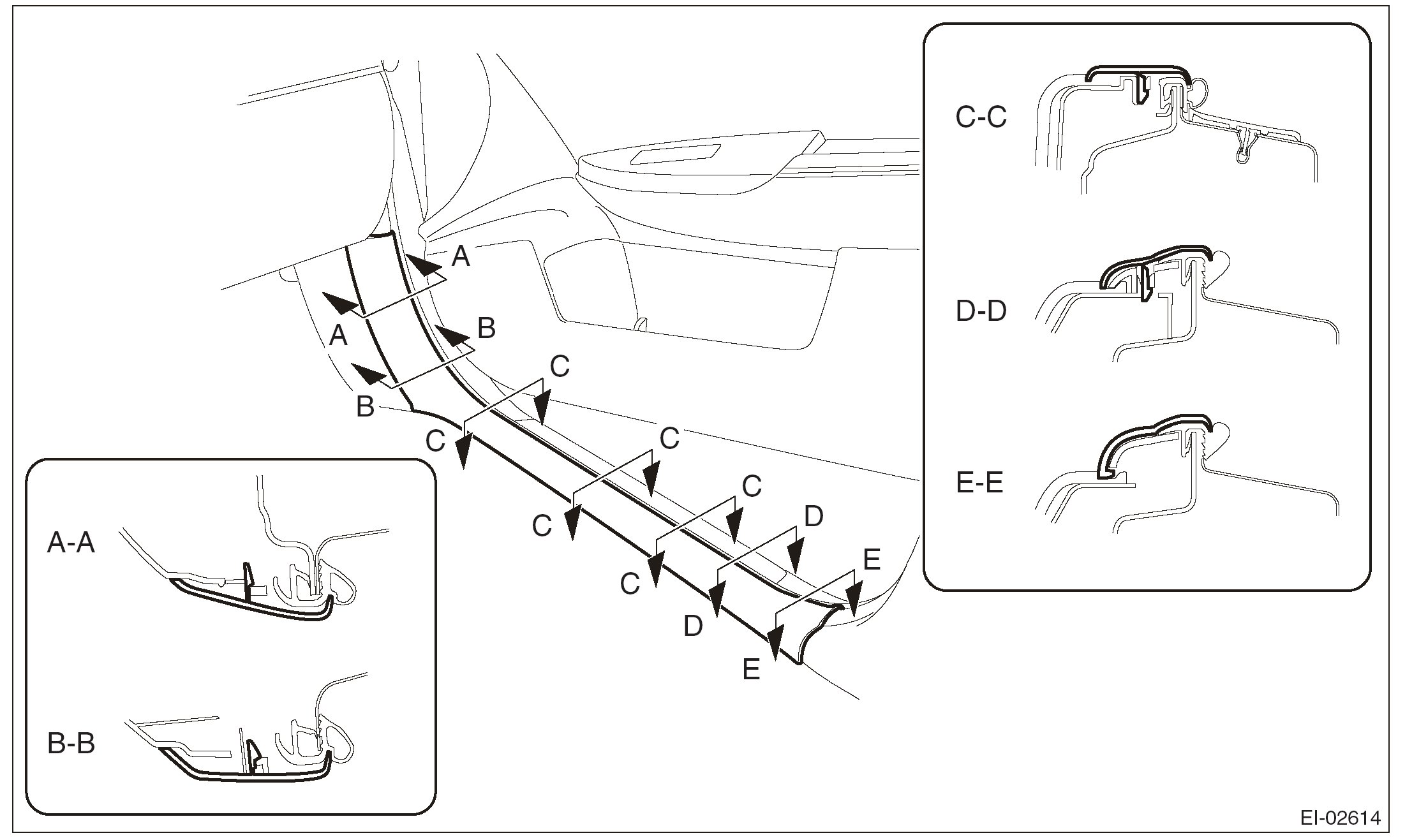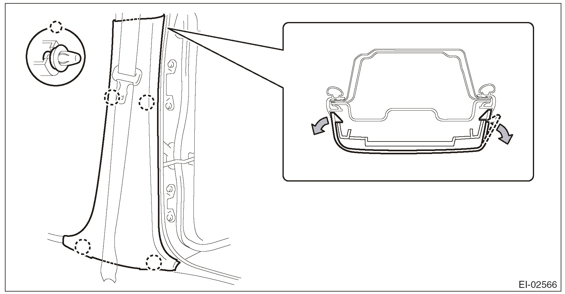 - Do not reuse the clips in the upper section of the front pillar trim. Always replace them with new ones.
