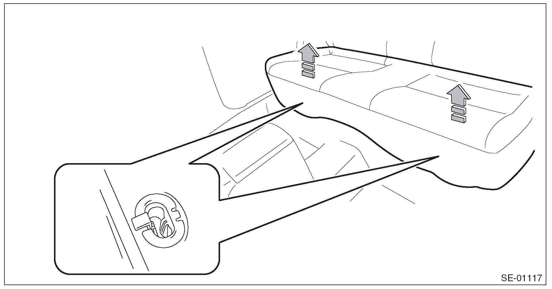 CAUTION: Do not reuse the clips in the upper section of the pillar trim. Always replace them with new ones.