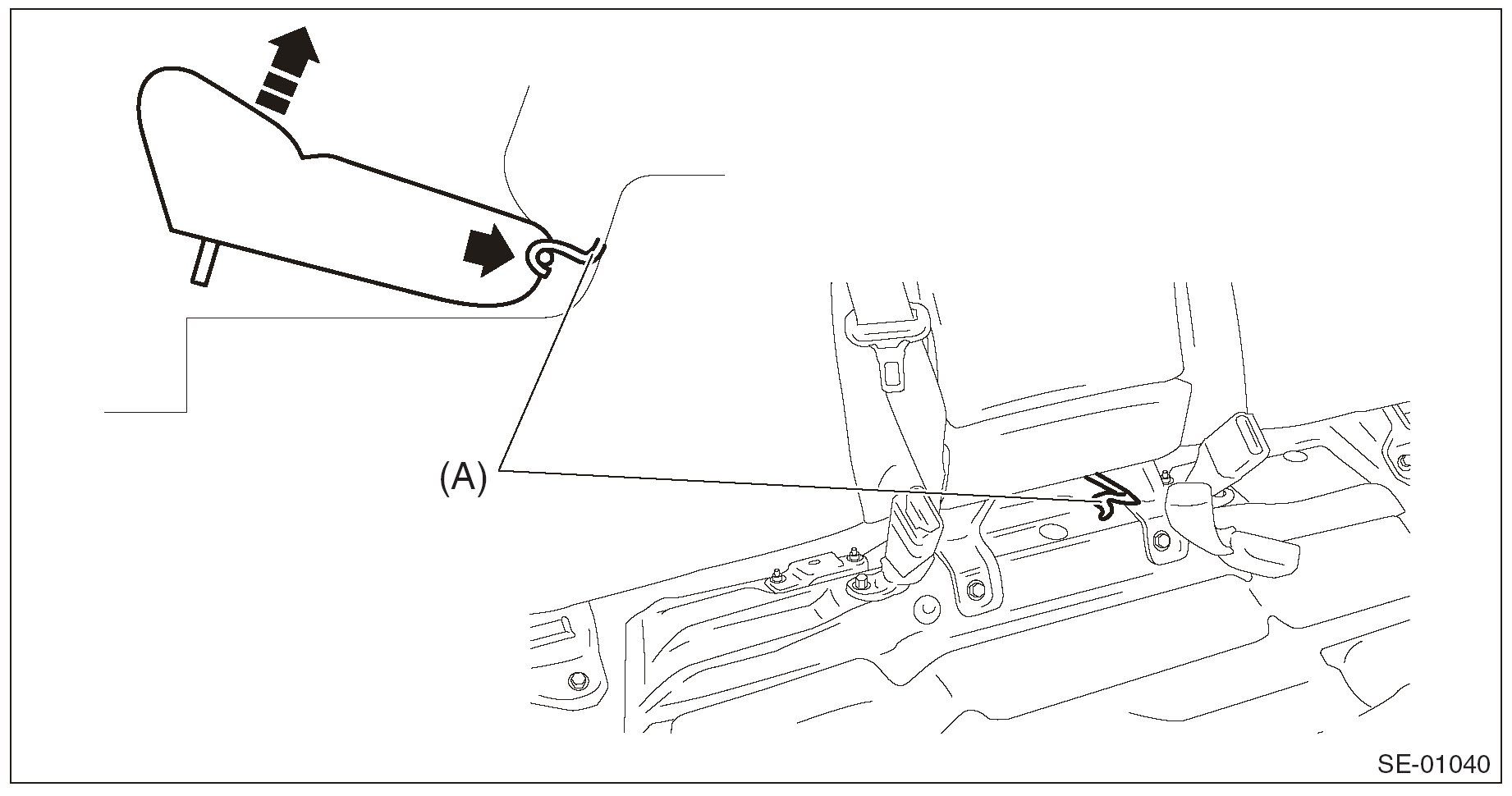 CAUTION: If the hook is removed from vehicle body, replace the hook with the new part to avoid the deterioration of seat securing.